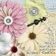 I used Lindy’s sprays in the background as well as PaperArtsy Infusions. I stenciled the Lacy Lotus Repeat Stencil by StencilGirl and colored it in using Distress Paint. I also stenciled a checkerboard stencil and embossed it. The background has been stamped with a Chevron by Unity Stamps.